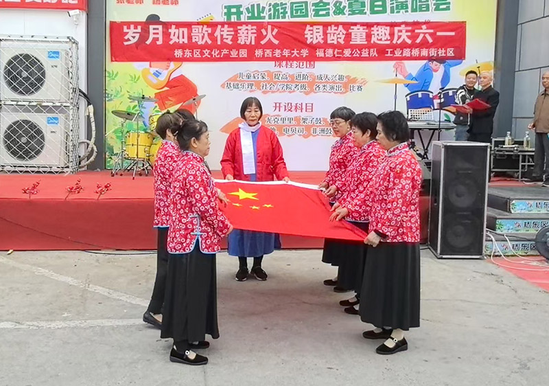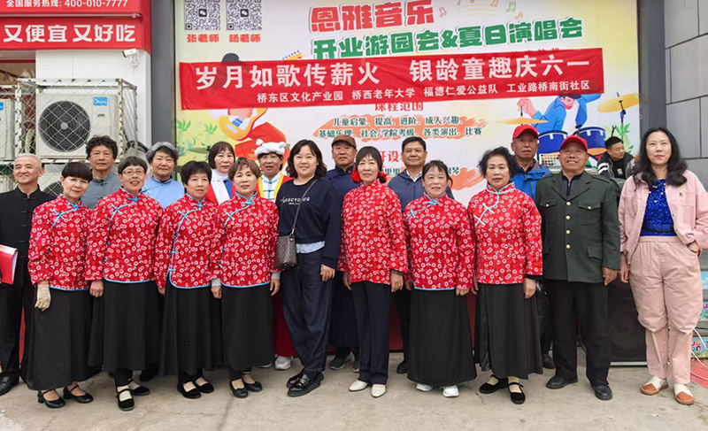 5月17日,由桥东区文化产业园、桥西区老年大学、福德仁爱公益队、工业路桥南街社区共同举办的以“岁月如歌传薪火,银龄童趣庆六一”为主题的文艺演出在桥南街社区演出。