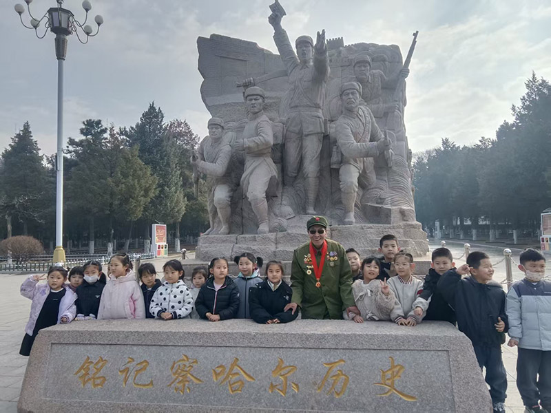 随后,李书庭老人以亲切生动的语言,为在场的小朋友们深情讲述了全国著名战斗英雄董存瑞的英勇事迹。老人结合烈士陵园的红色背景,用通俗易懂的话语,还原了董存瑞烈士舍身炸碉堡的壮烈场景,讲述了烈士为国家、为人民无私奉献、英勇献身的崇高精神。孩子们静静聆听,眼中满是崇敬,深刻感受到今天的幸福生活来之不易,在幼小的心灵中种下了爱国、感恩、勇敢的种子。