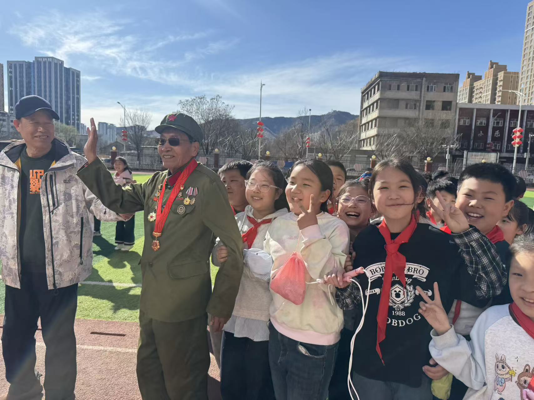 活动现场氛围庄重肃穆,少先队员们身着整齐校服,佩戴鲜艳红领巾,以崇敬的目光迎接李书庭爷爷的到来。活动伊始,全体师生肃立,向罗阳烈士默哀,表达对这位为国捐躯英雄的深切哀思与崇高敬意。 随后,李书庭爷爷结合罗阳烈士的生平事迹与爱国奉献精神,为孩子们展开深入浅出的讲解。他用朴实真挚的语言,讲述了罗阳同志一生坚守航空报国信念,为我国航空事业呕心沥血、鞠躬尽瘁,直至生命最后一刻仍奋战在工作岗位上的感人事迹,生动诠释了“忠诚、执着、担当、奉献”的英雄品格。作为有着丰富爱国主义教育经验的义务讲解员,李书庭爷爷还结合察哈尔烈士陵园的红色故事,将革命先烈的爱国精神与罗阳同志的报国情怀相融合,引导孩子们深刻理解爱国主义的内涵,明白今天的幸福生活来之不易,更懂得少年一代肩负的责任与使命。