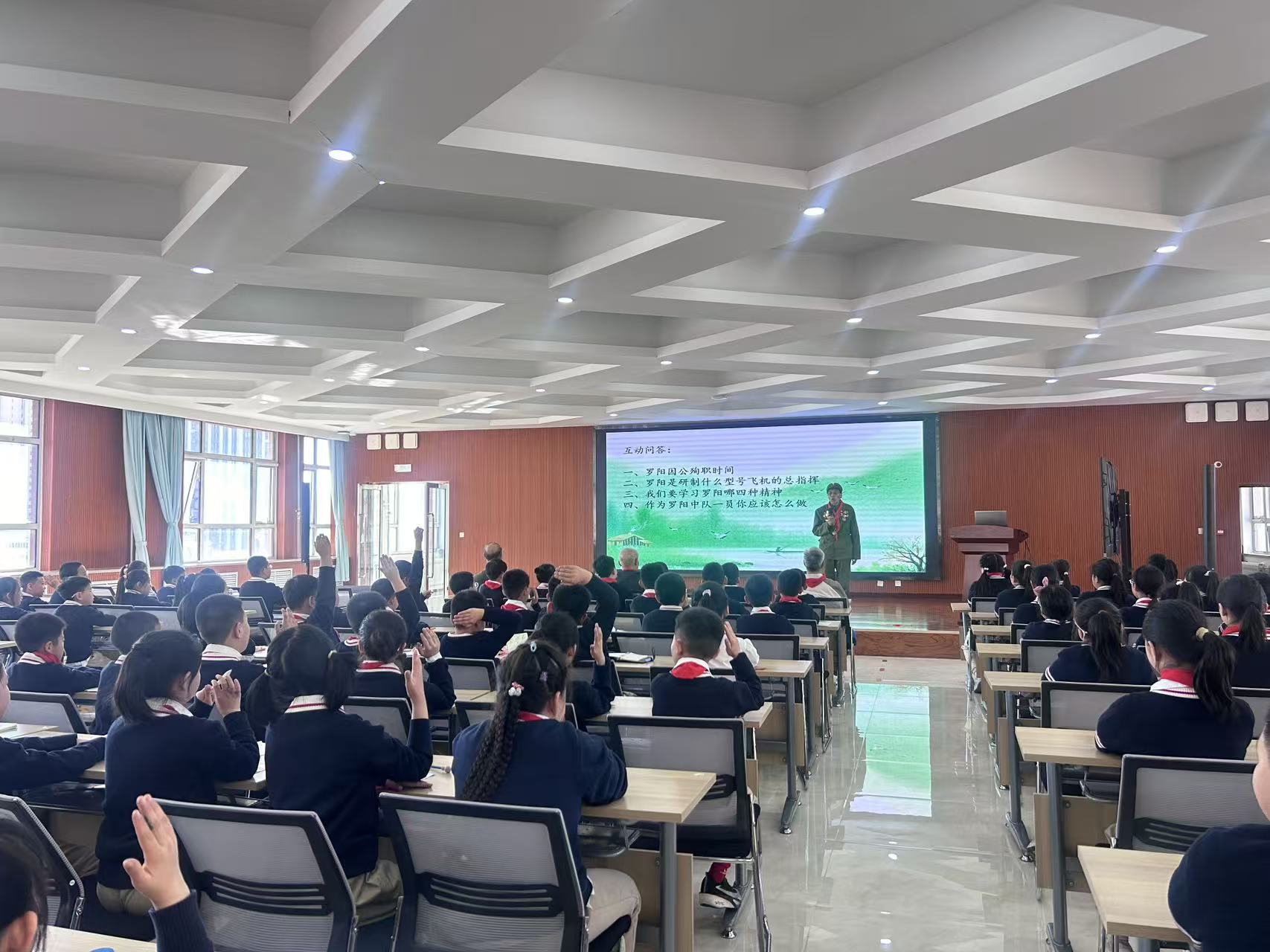 课堂上,李书庭爷爷与少先队员们亲切互动,耐心解答孩子们提出的问题,鼓励大家以罗阳烈士为榜样,从小树立远大理想,厚植爱国情怀,勤奋学习、砥砺品格,努力成长为有理想、有本领、有担当的新时代好少年,长大后成为对国家、对社会有作为的人,用实际行动传承红色基因,延续英烈精神。