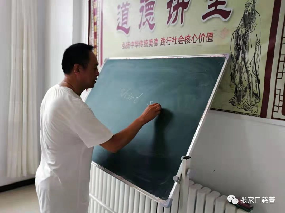 右一为侯宝存老师 一、英语培训班在怡安街社区进行 2019年7月24日下午,冬奥英语老年志愿服务队英语培训班在怡安街社区进行第184次活动。此次活动是英语沙龙课,特约英语嘉宾马成惠先生与义务教学的老师们进行了英语口语的交流,并且对英语教学中出现的问题进行了探讨,这是一堂有意义的活动。
