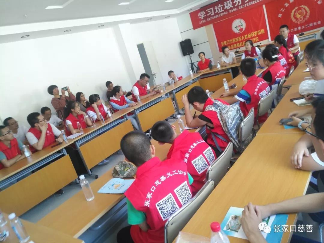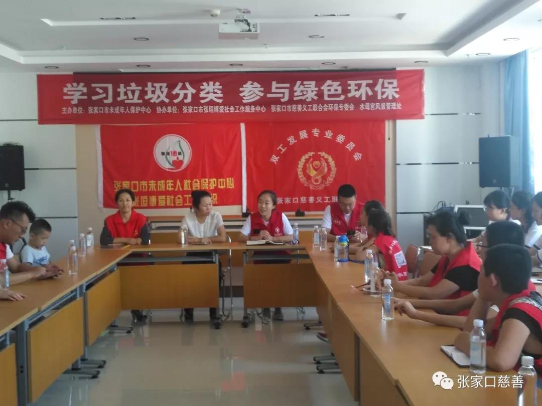 2019年7月26日下午,由张家口市未成年人保护中心主办,由水母宫风景管理处、张家口市慈善义工联合会环保专业专委会及张家口市张垣博爱社会工作服务中心共同协办的一次环保活动在张家口市救助管理站展开——垃圾分类小课堂。