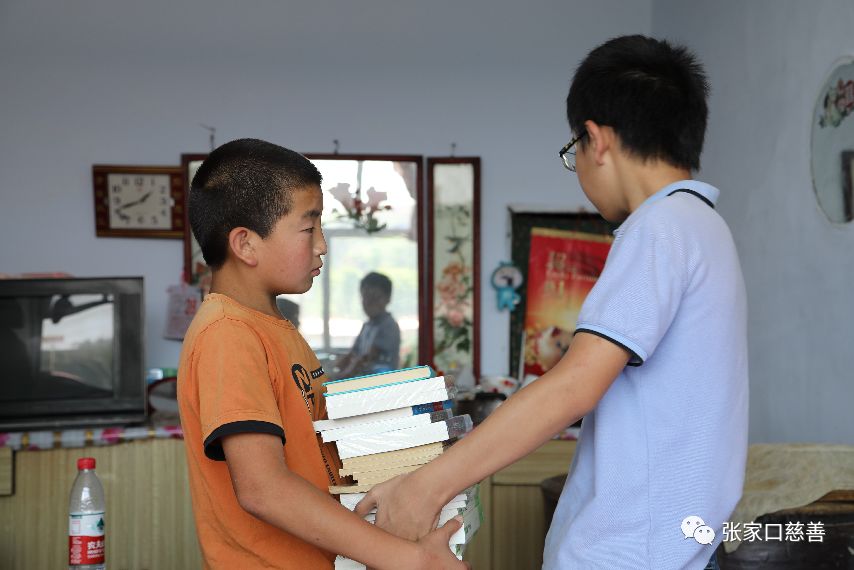 “这些是我最爱看的书,送给你”——来自北京爱心家庭孩子芮霄颖,把这些书籍送到了新结识的小伙伴手中。7月27日来自北京的孙女士一家,在怀安县爱在路上志愿者团队成员的陪同下,来到第三堡乡狮子口村一名失去父母和奶奶相依为命的孩子家中。