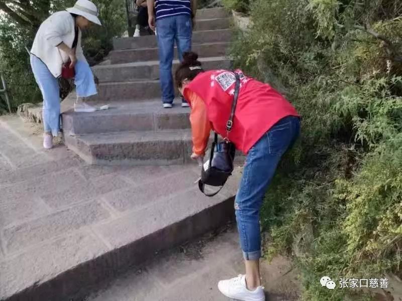 2019年8月28日上午,福星公益的十五名爱心志愿(其中有两名小朋友爱心志愿者)走进张家口市大境门风景区开展“爱我城市、呵护美丽”的公益活动。