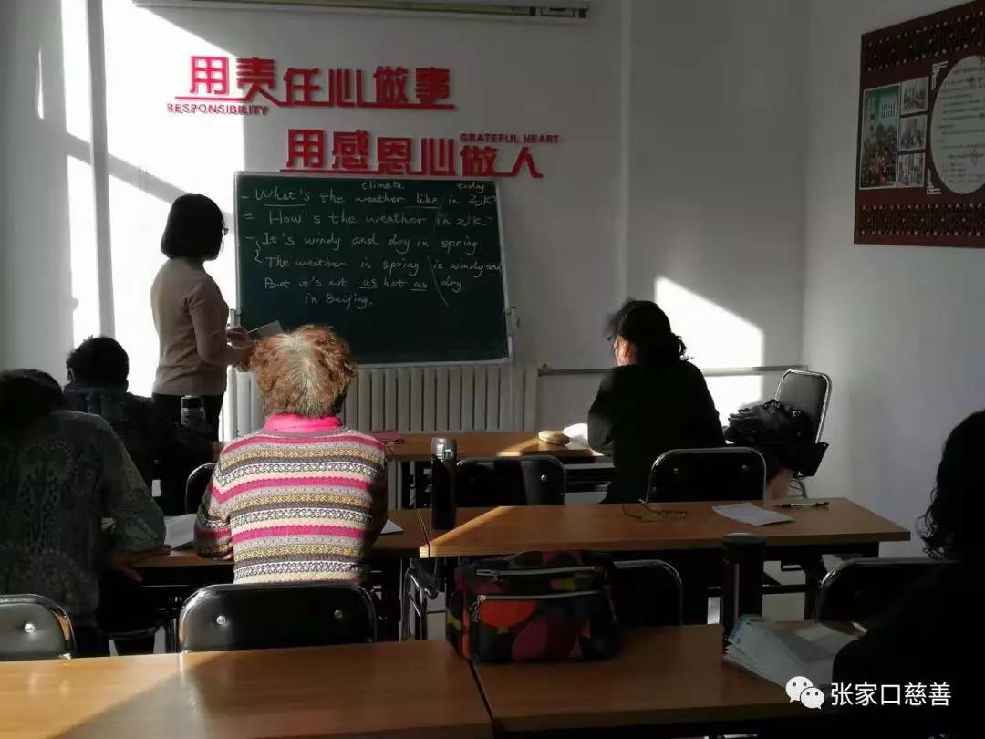 四、英语培训班在怡安街社区进行 2019年11月27日,冬奥英语老年志愿服务队英语培训班在怡安街社区进行第322次活动。王丽新老师主讲新概念第二册第35课;同张家口学院外语学院的大学生AIR志愿者进行英语沙龙活动。气氛活跃,效果非常好。