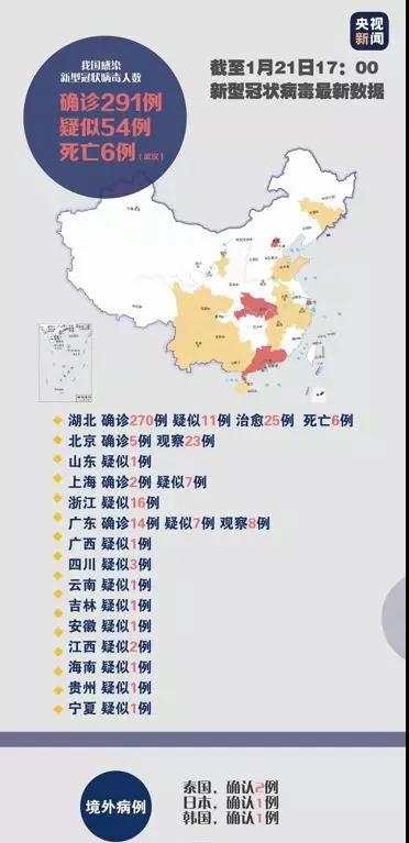 国家卫生健康委收到国内4省(区、市)累计报告新型冠状病毒感染的肺炎确诊病例291例(湖北省270例,北京市5例,广东省14例,上海市2例);