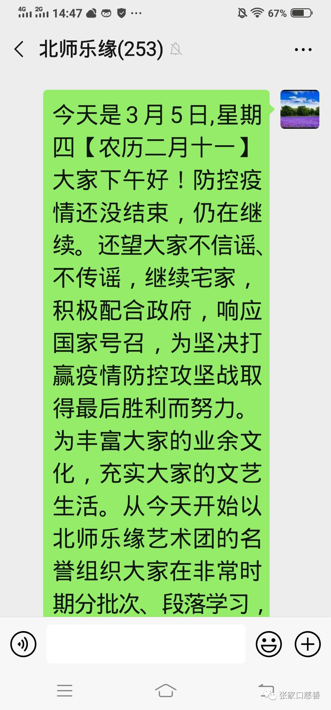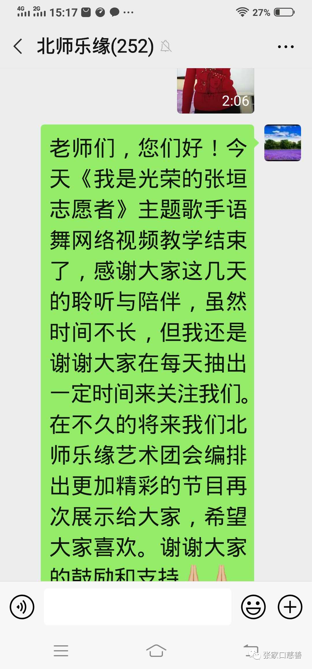 惊蛰刚过,大地回暖。防控新型冠状病毒感染的肺炎疫情仍未结束,宅在家里防范病毒依然是首要任务。少出门不出门正是配合政府防控工作,响应国家号召,为坚决打赢疫情防控攻坚战的必要措施。当然,长时间宅居家中,大家未免感到生活有些单调沉闷,为丰富大家的文化生活,活跃日常生活气氛。3月5日,北师乐缘义工之家艺术团积极组织大家在非常时期分批次、分章节,以录像形式学习手语舞蹈,由北师乐缘义工之家艺术团副团长薛彩云老师和市特殊学校的常海英老师分别示范,指导大家学习。内容是由常老师自编自导的《我们是光荣的张垣志愿者》主题歌手语舞视频教程,这段舞蹈既优美潇洒又简单易学,学习过程舞出了他们的心声,表达了对美好生活的热爱和向往。