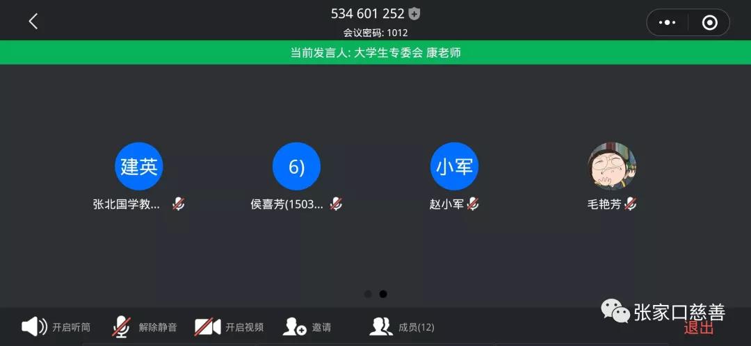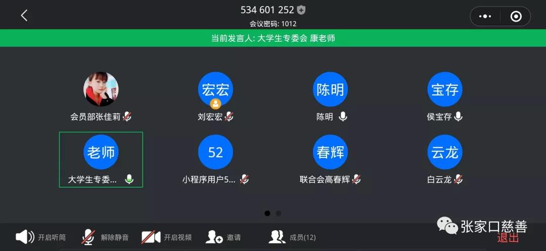 2020年6月16日,第二十五届轮值委员会在“腾讯会议”小程序召开网上轮值会议。会议由轮值会长康俊霞主持。 参加会议的有第二十五届轮值委员会会长康俊霞,张家口国学研究会义工队副队长陈明、巅峰爱心车队副队长冯建瑞、星之路关爱孤独症人义工队队长侯喜芳、福德仁爱公益队队长毛艳芳、东方中学青年志愿者协会队长白云龙、冬奥英语老年志愿服务队队长侯宝存、张北国学教育志愿者服务队贾建英;张家口慈善义工联合会执行秘书长赵小军、会员部张佳莉、宣传部高春辉、河北慈善联合基金会专职人员刘宏宏。