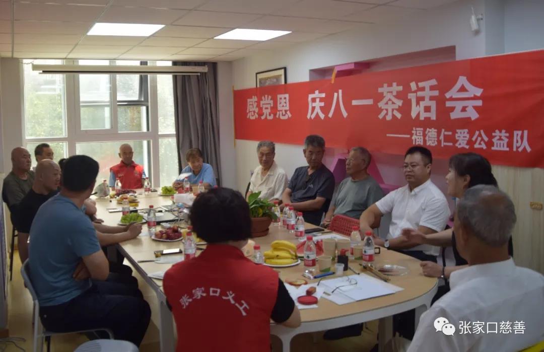 在八一建军节到来之际,福德仁爱公益队组织部分退役老党员,以“感党恩 庆八一 ”为主题,以“致敬建党百年,守护军人听力健康”为服务内容,在新声场张家口听力中心会议室举行了党员军人茶话会。共同回忆军旅生涯,分享过去的喜悦与经历,感恩新时代给与我们的幸福生活。