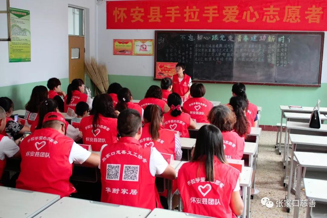 2018年8月18日上午在怀安柴沟堡二中由张家口慈善义工联合会会员部的郭瑶,贾晓卉两位老师为怀安手拉手志愿服务队开展慈善心德培训会。