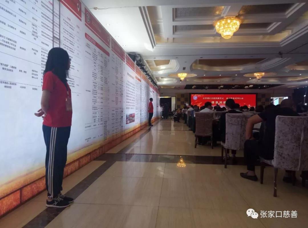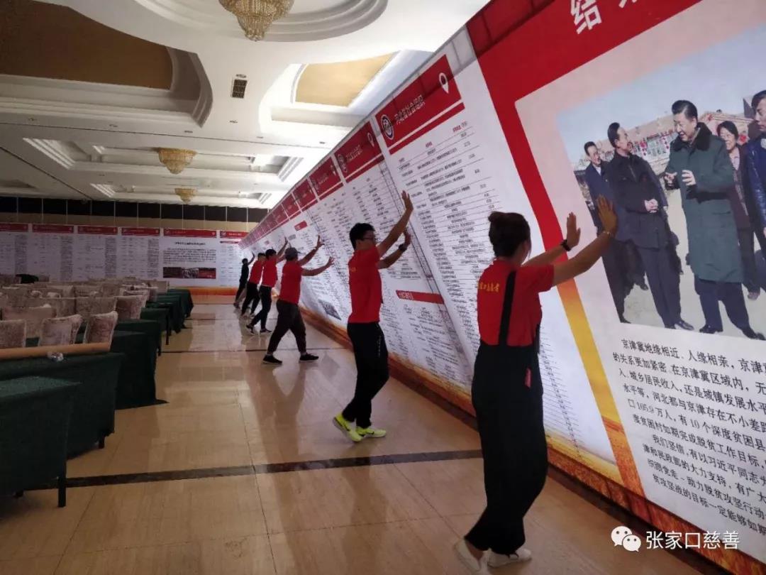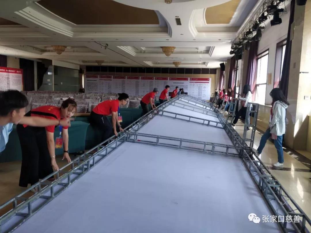 张家口慈善义工联合会派出十名志愿者助力项目对接大会,21日中午11点志愿者们就到达了会议现场,大家分工明确,摆桌牌、安置会议文件、搬运捐赠物资、安装展架、引导参会人员办理签到办理入住、告知领引到达会议所在目的地,晚上8点半辅助会务组进行彩排,志愿服务一直持续到晚上11点。22日,会议当天,作为会场的志愿者散布在会场的各个角落随时为参会人员提供帮助。服务过程虽然辛苦,但是大家任劳任怨,在服务大家的过程当中也快乐了自己。