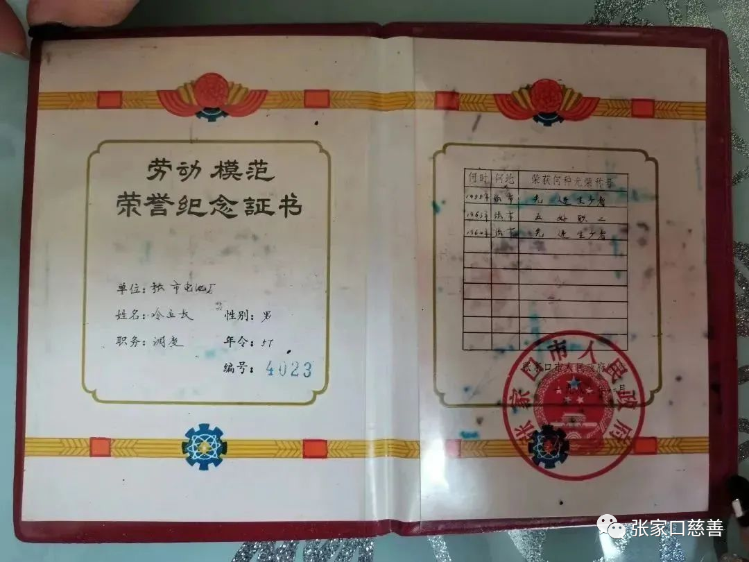 冷立长老人的劳动模范荣誉纪念证书 冷老听说志愿者要来看望,早早的在楼下等待,97岁的老人依然可以看到军人挺拔的身姿,脚步坚定有力,声音宽广洪亮,热情地邀请我们进到家中,拿出自己的军功章以及证件、证书等,志愿者为老人佩戴了印有“老兵光荣”的绶带,冷老讲起战争年代的故事,眼泪在眼眶中不停地打转,仿佛曾经已经故去的战友就在眼前,强烈的情感涌上志愿者的心头。
