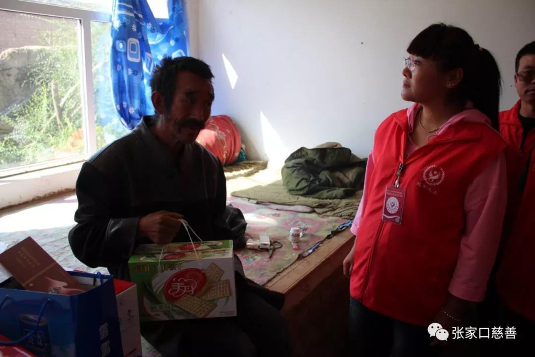 志愿者在怀安城第三堡乡曹家村实地走访了一位痴呆症患者。患者每月靠低保维持生活,一日三餐多数靠周边的邻居救济为生。志愿者去看望这位大叔,送去礼品的同时,并简单帮助大叔打扫了卫生。