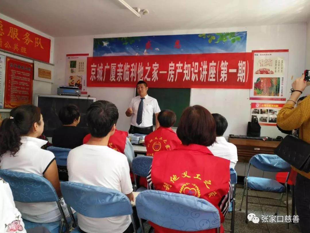 为了让大家更好的了解张家口房价的动向以及自己现居住住房在当今市场上的价格走势。9月5日上午利他义工之家在利他之家活动室有幸特别邀请到张家口京城广厦房产经纪有限公司三位工作人员亲临利他义工之家为大家举办一场房产知识讲座,现场一对一答疑解惑。参加此活动的座无虚席动,为了使大家更方便、更快捷、更好的了解更多不为人所知房产知识,工作人员详细的给我们一一讲解,大家在下面认真聆听,时不时的向工作人员提出自己不懂的问题,工作人员不厌其烦,都耐心地仔细解答,讲座现场从始至终都洋溢在热情祥和的气氛中,活动圆满结束。