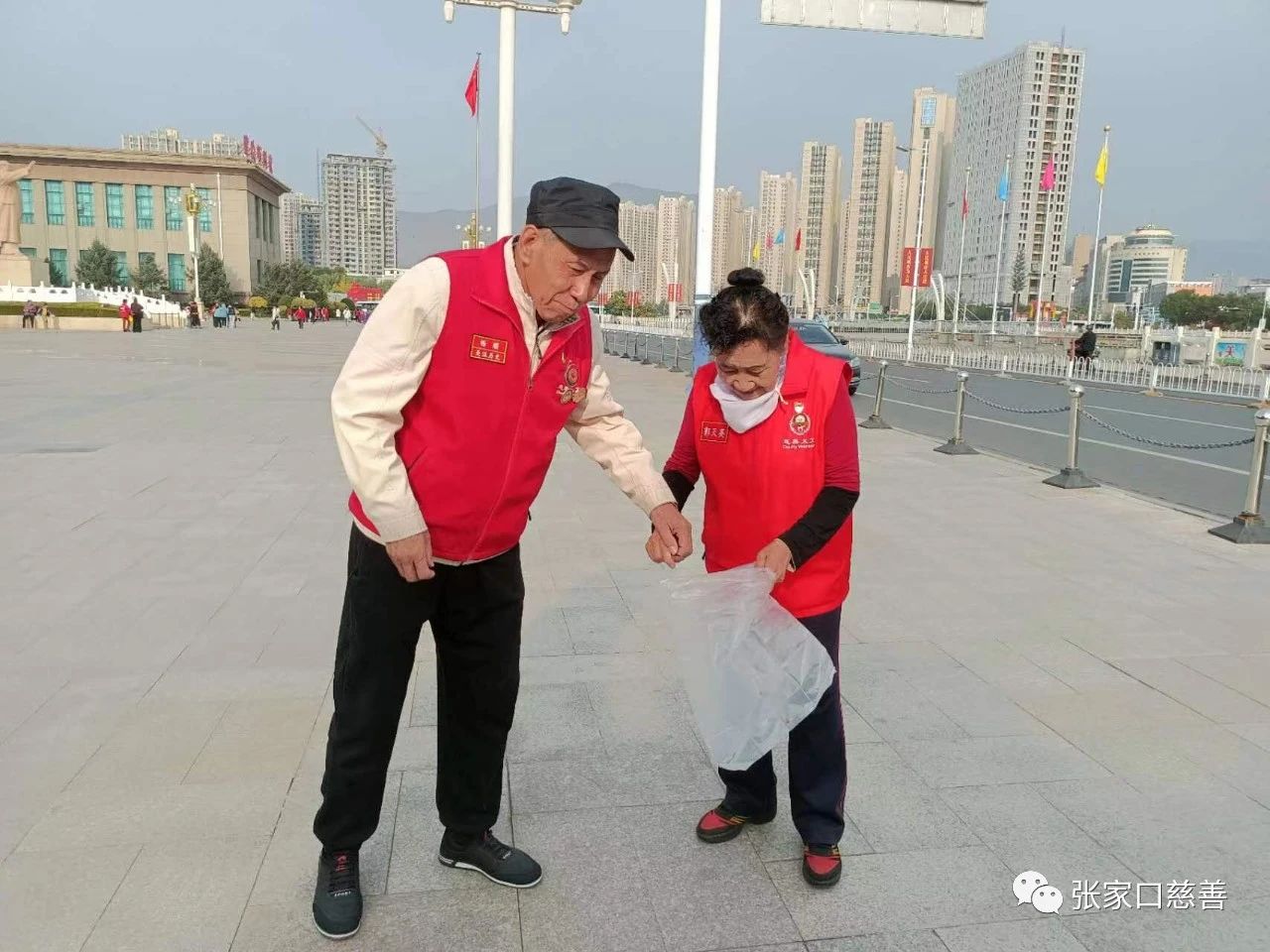 金秋十月,秋风送爽,举国同庆,合家团圆。在举国欢庆共渡双节的喜庆日子里,经开区威风锣鼓义工队认真贯彻落实张家口慈善义工联合会党委《争做环保志愿者,不做垃圾制造者》通知精神,在大队长张凤英的组织安排下,从9月30日~10月6日在桥西区清河中路展览馆清水河畔,展开了“节日零垃圾,城市更美丽”的清理现场垃圾、保护广场环境活动。义工队员们积极下载了五社善治App,投入到了这项具有意义的活动中,共有50多人(次)参加了此项志愿服务活动。