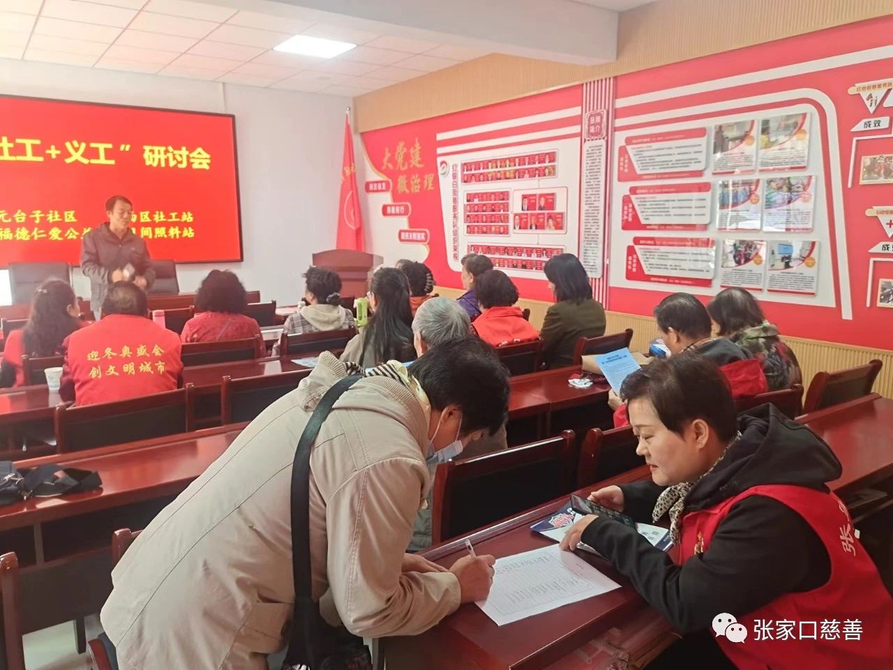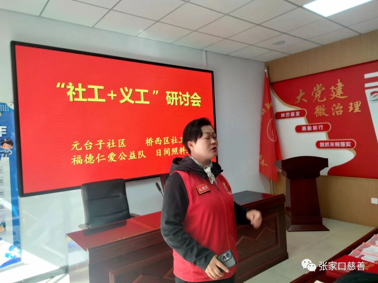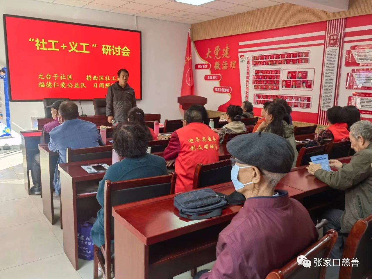 10月10日,由福德仁爱公益队、桥西区社会工作指导中心、元台子社区联合举办的“社工+义工”研讨会在元台子社区会议室举行。为全面推进“五社联动”奠定基础。