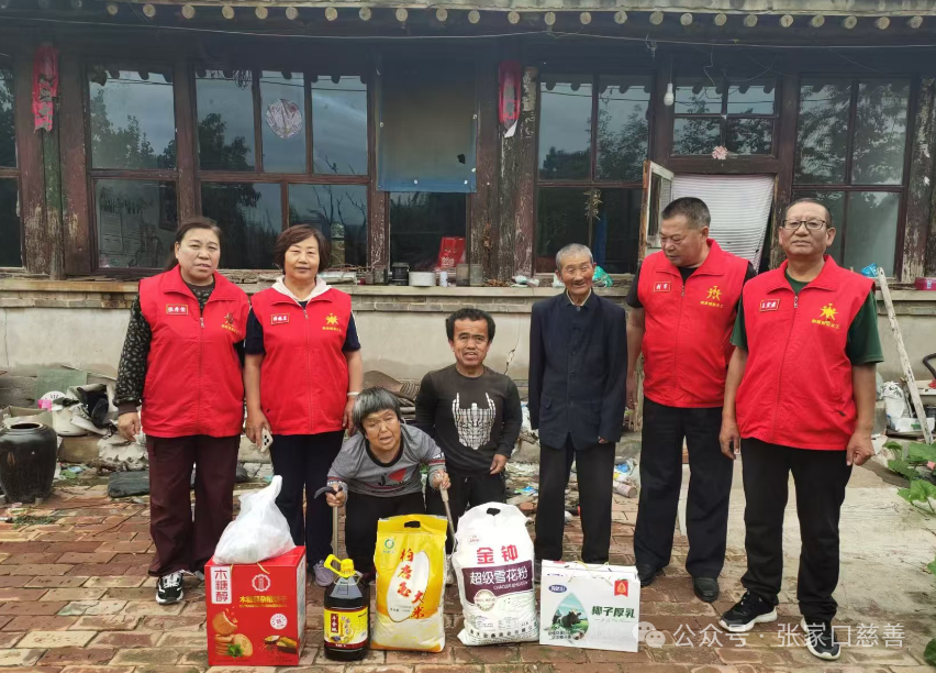 2024年9月13日,农历八月十一。中秋节马上就到了,大家上午把自己家里的事情安排一下,下午中秋节慰问贫困老人的行动又开始了,帅振兰队长组织春风送暖爱心队的几位志愿者买上慰问品,两点准时出发,第一户去看望要家庄乡疙瘩头村的一个非常特殊的家庭——张明家。这家人让人看见真的是好心酸啊!张明和他母亲都是侏儒症,父亲和他的妻子是智障,需要他们两个人照顾,一家人的生活确实难啊……张明得知志愿者要去看望他们的消息后,早早就在大门口等上了,他看见穿红马甲的志愿者来了,激动的眼泪都快掉下来了……志愿者把白面,大米,麻油,牛奶等慰问品放到院子里,张明就赶快从家里喊母亲出来,老人看上去有些疲惫,但仍然高兴地和大家一一握手,表示感谢!从家人们的聊天中得知,这几天老人的身体有点难受,所以我们也没有长时间逗留,和他们一家人合影留念后,就去另一个村——牛蹄庄。