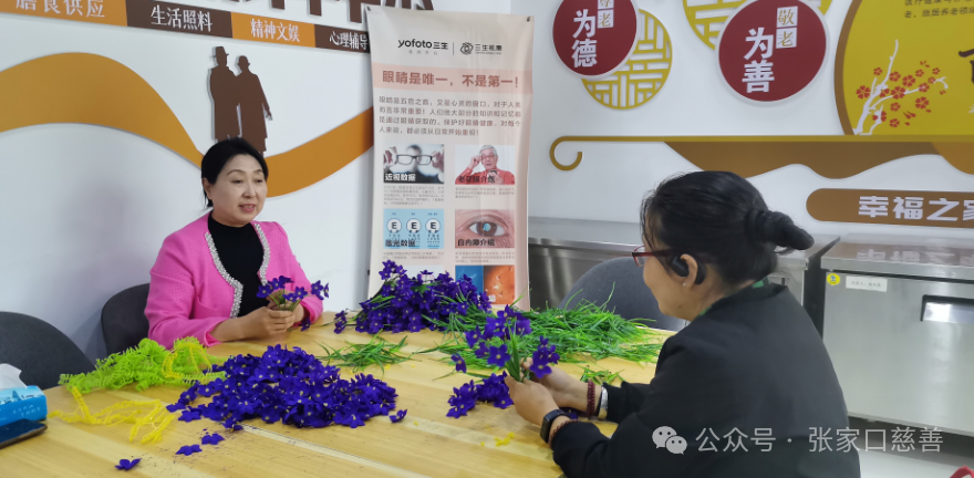 2024 年 9 月 19 日,张家口春风助残义工队在党支部书记队长刘俊琴的组织带领下携手东宁街逸休雅居日间照料服务站,在东宁街社区,继续开展了一场充满温暖与希望的手工加工制作培训活动在辖区内热烈开展。志愿者朱雅茹,王小云,钱珍珠,还有大学生志愿者们积极行动,带领着辖区的妇女、待业者、宝妈以及残障人士共同参与仿真插花制作培训。