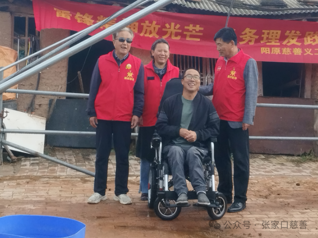 9月20日下午,雷锋理发队长王文顺百忙之中抽出时间,冒着小雨,开私家车带领刘忠和吴桂荣,去往马圈堡乡保辛关村,给残疾人士任富成送爱心轮椅!