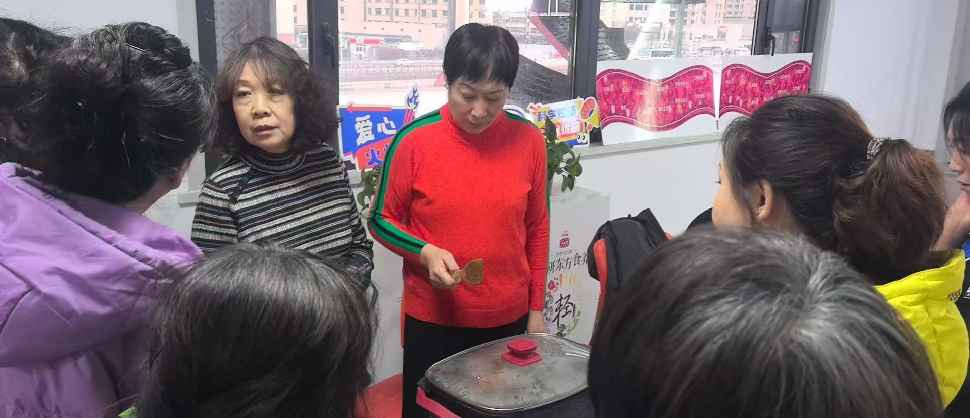 分享会后,姜爱老师带领与会志愿者们一同动手体验护腿操作。现场气氛活跃,大家在学习健康知识的同时,亲身感受传统姜艾疗法带来的温通与放松。活动最后,所有与会人员合影留念,为这场充满温情与能量的首秀画上了圆满的句号。