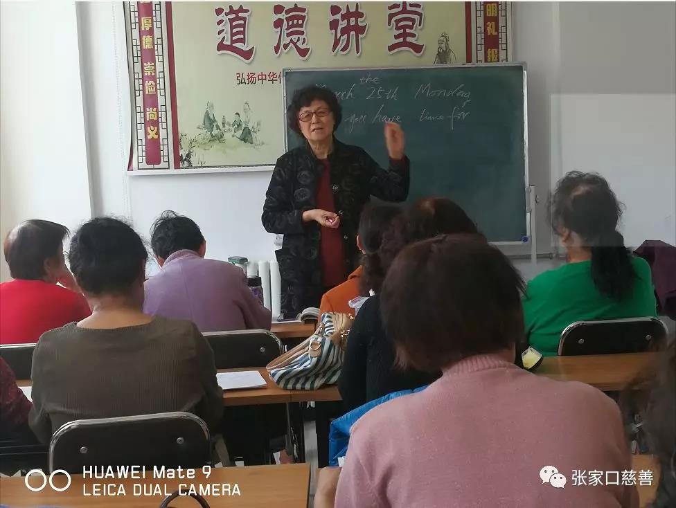 2019年3月25日上午,张家口慈善义工联合会冬奥英语老年志愿服务队在怡安街社区进行第39次活动。蔚芳老师主持,内容为《英语家庭套餐》,效果良好。