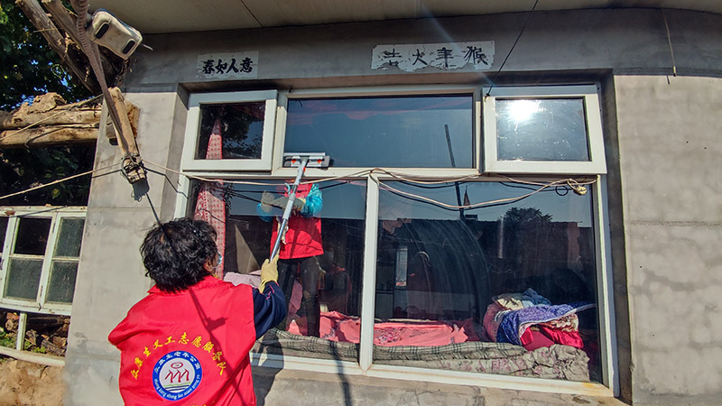 活动中,志愿者们携带扫帚、拖把、抹布等清洁工具来到老人们家中。有的擦拭门窗玻璃,有的为老人理发,有的整理室内物品。大家不怕脏、不怕累,细心地将每个角落打扫干净,志愿者们还捐献出的衣服、购买的床单为老人们换上。在劳动间隙,志愿者们与老人亲切交谈,详细了解他们的生活状况和健康情况,叮嘱他们注意秋冬季保暖和饮食安全。家住张家坊村的郑凤岐老大爷感动地说:"感谢党和政府对我们的关怀,感谢志愿者们的辛勤付出,你们一来屋子亮堂了,心里也暖和了。"