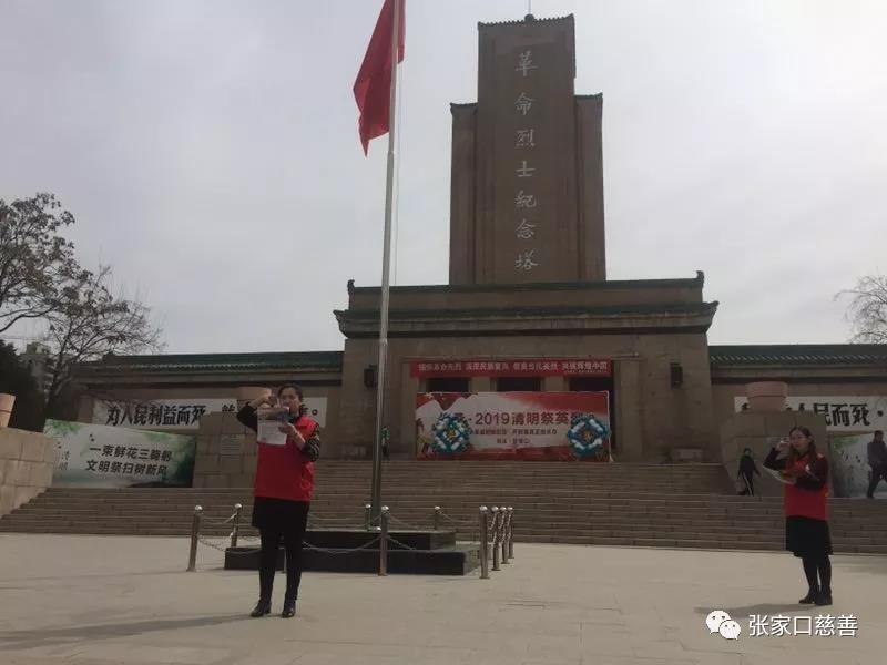 上午十点,扫墓活动在肃穆、庄重的氛围中开始。首先,向革命烈士纪念碑敬献花圈。全体志愿者向革命烈士纪念碑默哀一分钟,表达了自己对先烈的缅怀之情。随后,张家口桥东区慈善义工联合会党总支书记韩晓燕带领全体志愿者向革命烈士纪念碑宣读了志愿者誓词!紧接着志愿者代表 ,大学生志愿者专委会代表,市慈善义工联合会顾问常久将军分别致辞表达了志愿者们对革命先烈无比的崇敬之情!最后志愿者们列队参观了革命烈士祭奠陈列室。