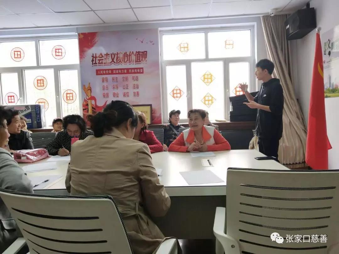 2019年4月19日下午,河北建筑工程学院外国语"Flying Eagle"志愿者团队中的志愿者英语172班王永利、英语171班袁雨微和财管171班赵添悦在张家口奥林星城社区进行了志愿服务活动。
