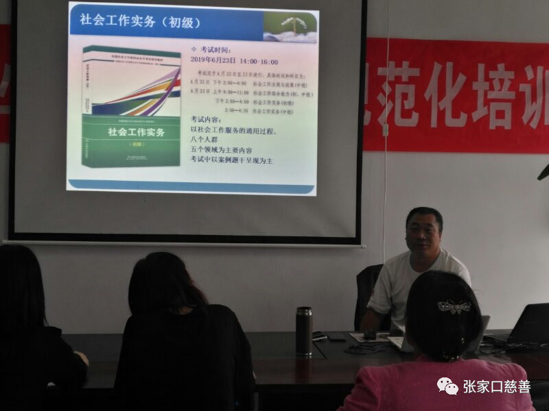 2019年5月18日,由双工发展专委会主办,张垣博爱社会工作服务中心协办的在张家口市桥东区冠垣广场展开培训活动。此次培训活动特邀高校大学教授宋老师作为授课老师。参加此次培训活动的老师有张家口慈善义工联合会的义工老师以及崇礼区社区的工作人员等。此次“社工工作实务”主题培训活动旨在结合社工考试大纲,开展考前辅导。