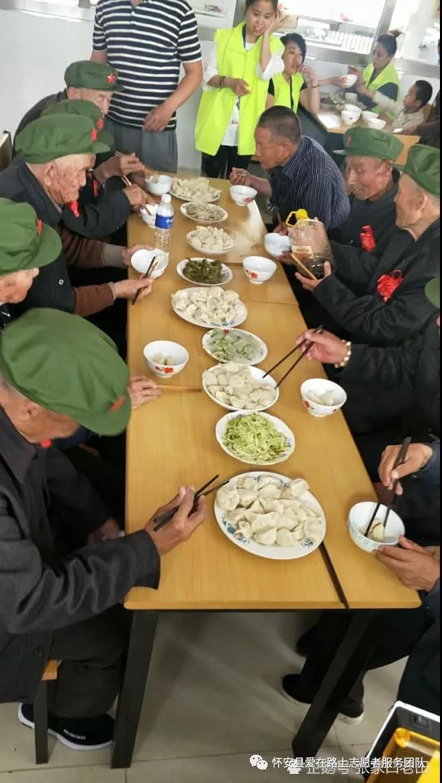 不忘初心继续前进!为了让革命英雄前辈知道祖国人民没有忘记他们,让老英雄们感受到家的温暖,在中午的时候,志愿者们为老兵们包了饺子,一起和老兵们共进午餐,老英雄们吃着志愿者包的饺子脸上洋溢着幸福的笑容。