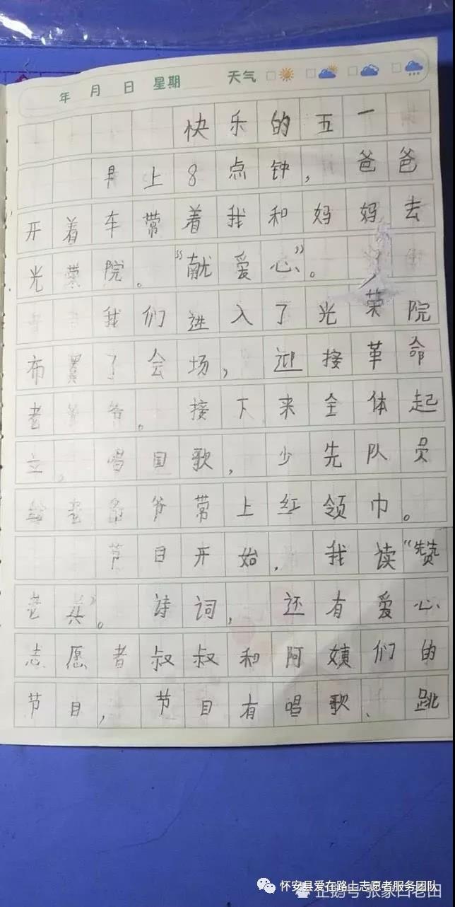 怀安县爱在路上志愿者团队资助的两名贫困家庭的孩子,让他们能完成学业,志愿者们进行了助学小组,志愿者们的这份爱心,让孩子更加努力学习,其中就在这次月考,资助的孩子获得了初中全年级第二名;为了感恩志愿者的资助,孩子为志愿者们赠送锦旗给志愿者团队;