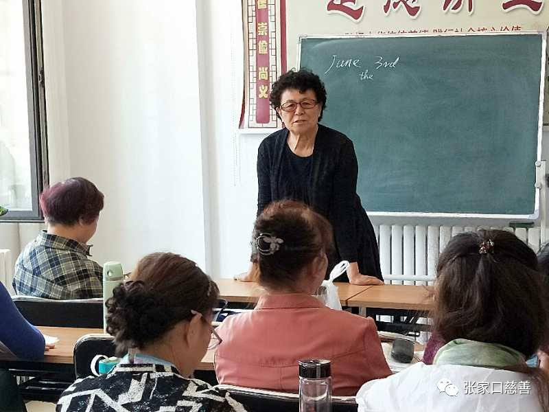 2019年6月3日上午,张家口慈善义工联合会冬奥英语老年志愿服务队英语培训班在怡安街社区进行第123次活动。蔚芳老师主讲《英语家庭套餐》,效果非常好。