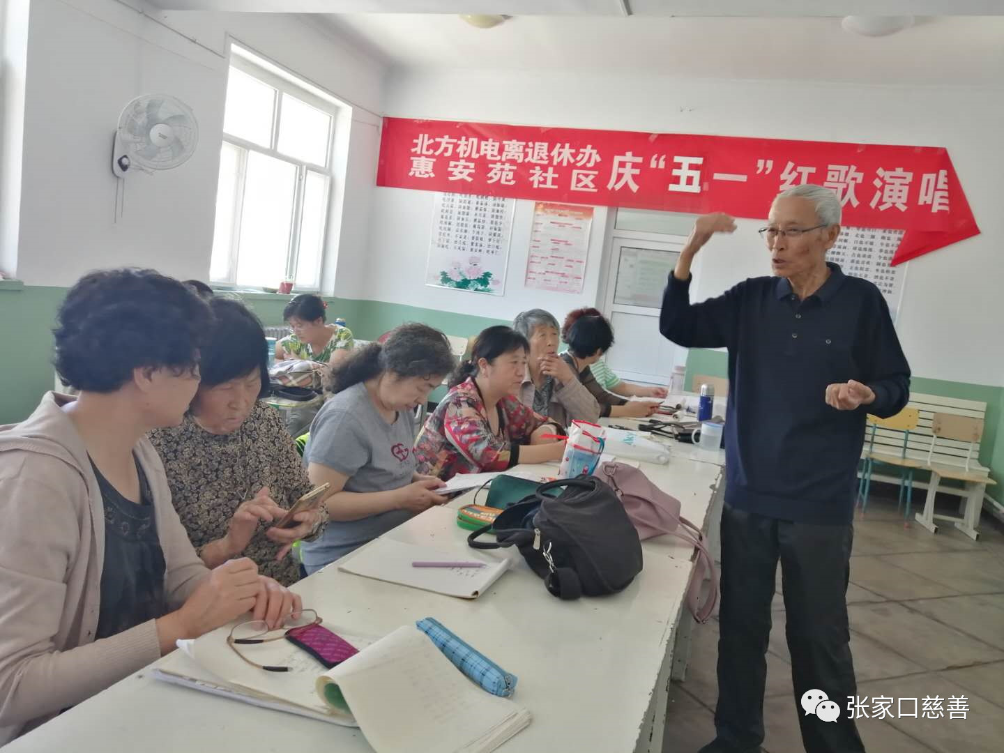 2019年6月5日上午,张家口慈善义工联合会冬奥英语老年志愿服务队英语培训班在怡安街社区进行第125次活动。侯宝存老师讲授英语口语及be动词在不同人称中的用法。通过顺口溜的讲解,学员们基本理解了。