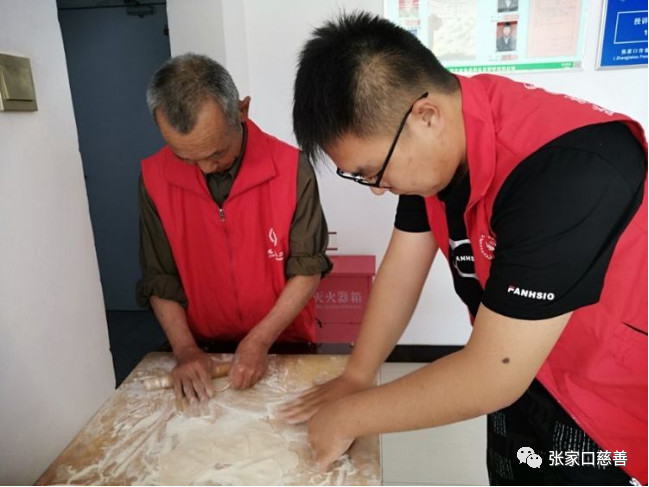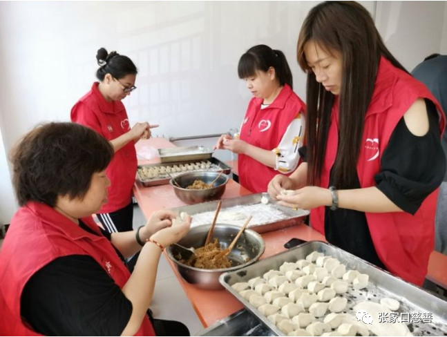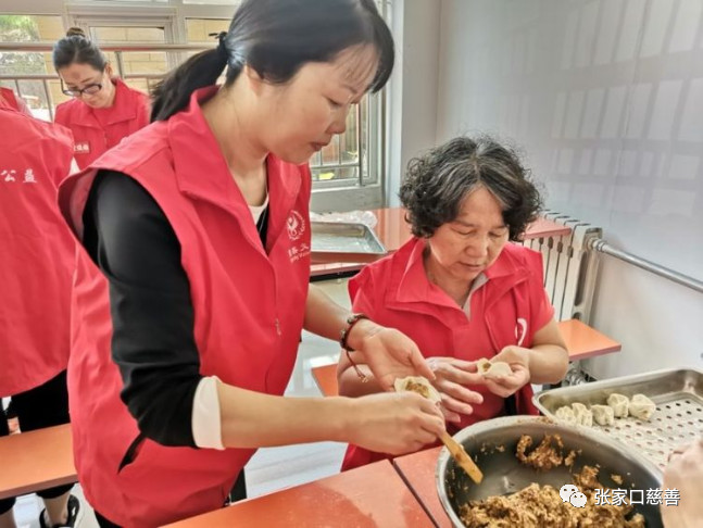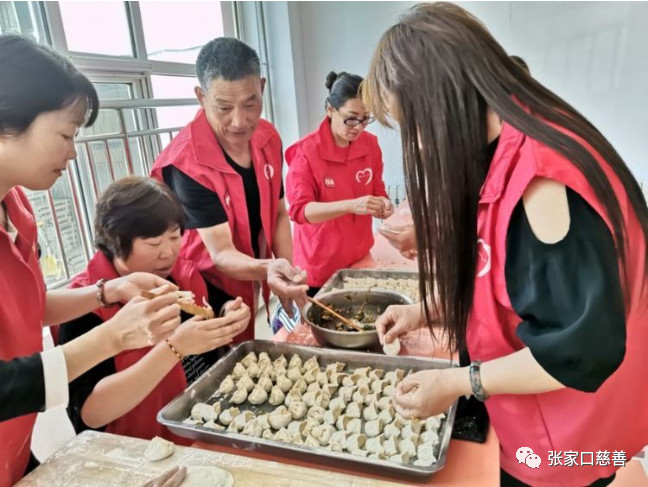 张家口慈善义工联合会福星公益队在传统节日端午节走进了安康老年公寓,组织了以主题为《爱老敬老公益活动》,队友们各尽其能,相互协作,其乐融融的为老人们包饺子。