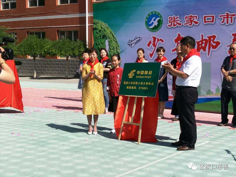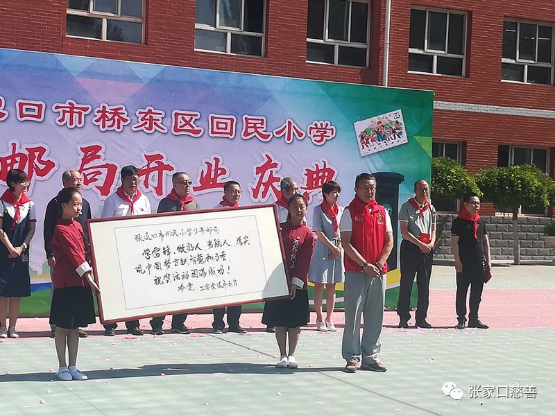 2019年6月6日上午,桥东区慈善义工联合会雷锋精神志愿者服务队有幸被邀请参加了桥东区回民小学雷锋中队成立少年邮局的揭牌仪式。今天来参加揭牌仪式的领导有中国邮政集团公司张家口市分公司副总经理李凤生,张家口察哈尔文化研究会常务副会长、张家口市集邮协会副会长刘文锦,张家口市总工会原副主席王治良,中国邮政集团公司张家口市分公司市场部经理王燕林,张家口市共青团桥东区委副书记马征,张家口邮政公司集邮与文化传媒部经理李敏,张家口市桥东区教育局思政艺科科长李海英,张家口市桥东区慈善义工联合会党总支副书记雷锋精神志愿者服务队党支部书记樊志勇,张家口市桥东区关工委副主任赵柱国,张家口市集邮协会理事田立勋,张家口市集邮协会会员苏恒杰,张家口市桥东区教育局教研室教研员刘瑾,张家口市社会工作联合会青少年工作委员会理事康瑾,张家口市桥东区回民小学校长张瑞琴。