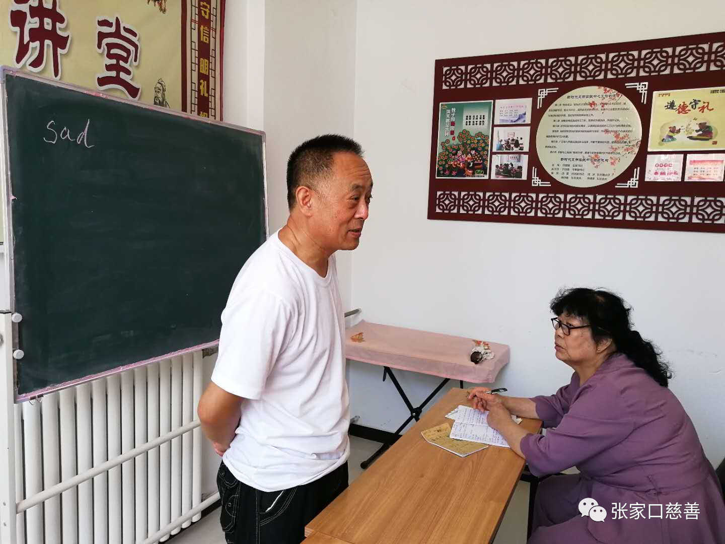 2019年6月12日上午,张家口慈善义工联合会冬奥英语老年志愿服务队英语培训班在怡安街社区进行第131次活动。侯宝存老师代蔚芳老师讲课,内容为《英语对话》,虽然人数不多,但大家学得都很认真,做了大量的练习,感觉很好。