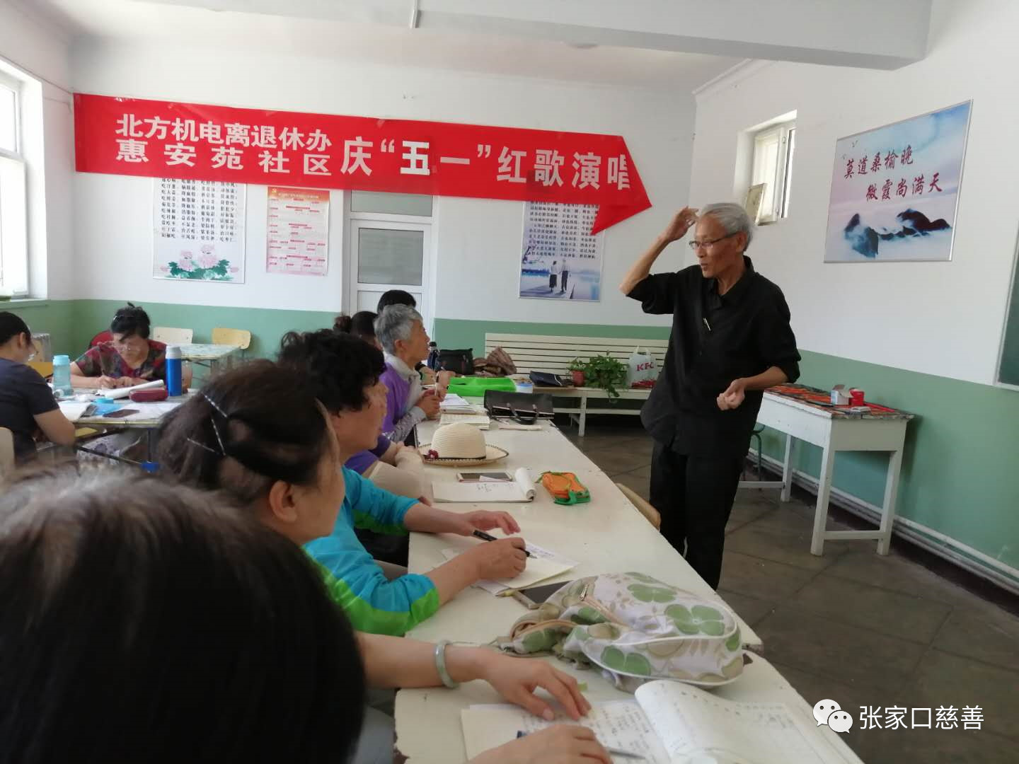 2019年6月10日上午,张家口慈善义工联合会冬奥英语老年志愿服务队英语培训班在惠安苑社区进行第129次活动。周岩老师给大家讲授了英语句型的基本规律,侯宝存老师讲了《张家口印象》,效果非常好。