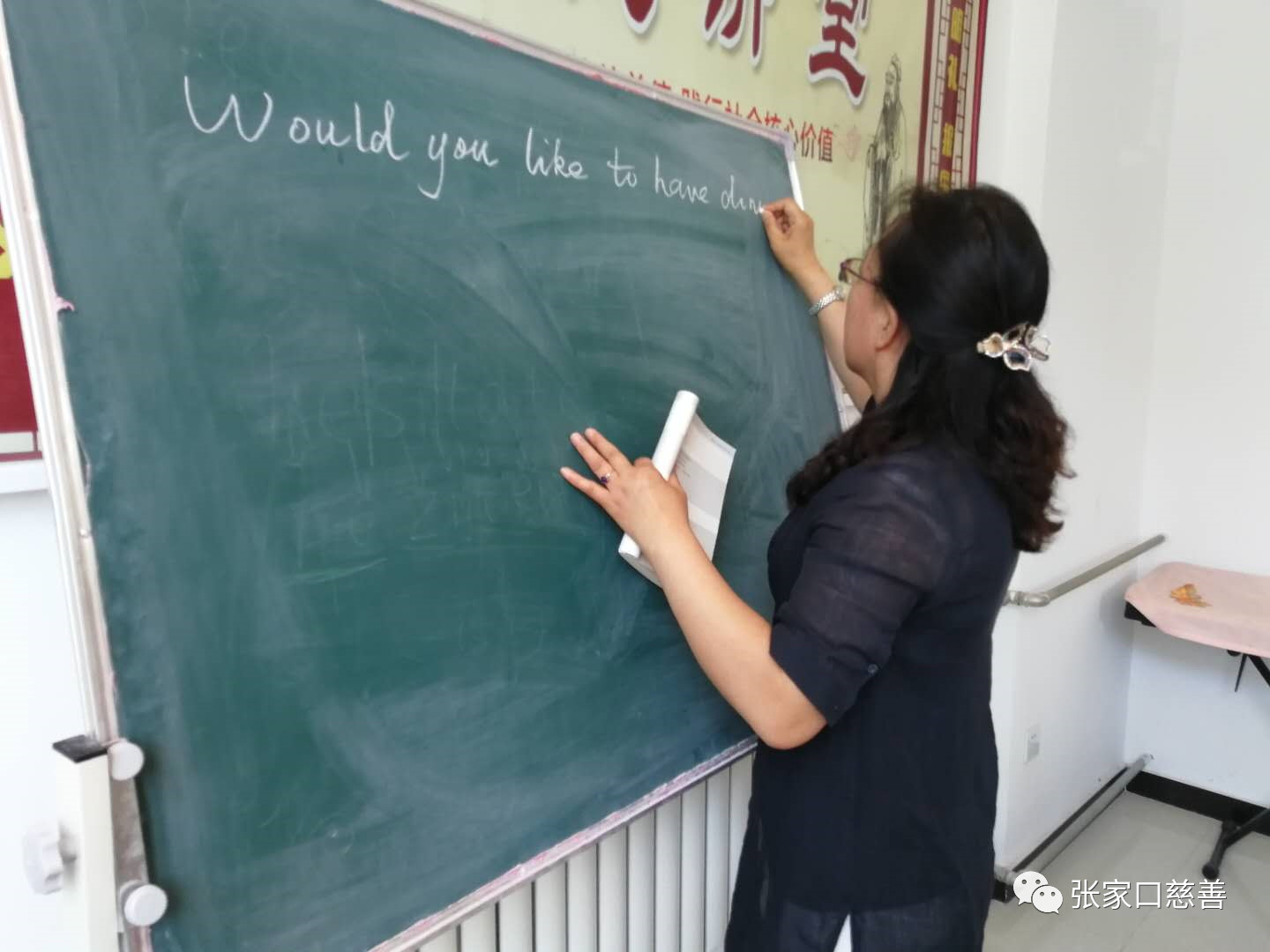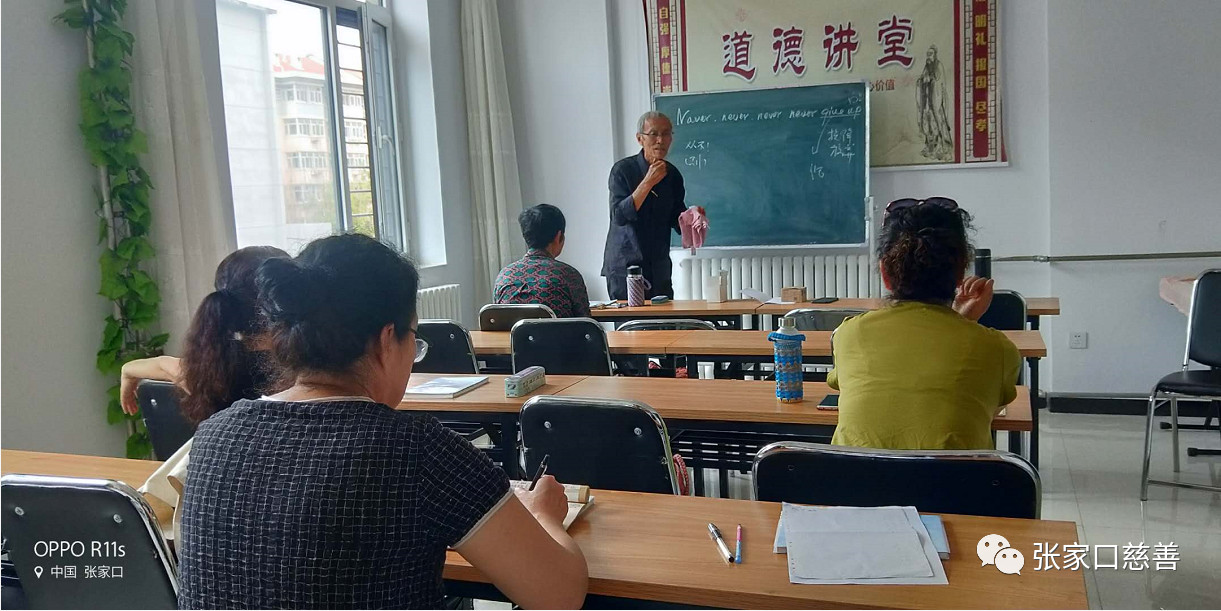 2019年6月10日上午,张家口慈善义工联合会冬奥英语老年志愿服务队英语培训班在怡安街社区进行第128次活动。特邀英语资深人士马成惠先生,做了《如何学好英语口语》的专题讲座,Mr. 马首先指出:英语是语言,是交流和表达的工具,然后用生动的例子给大家介绍了英语的基本交流的技巧和如何用所学的英语基础知识和外国客人进行沟通的方式。