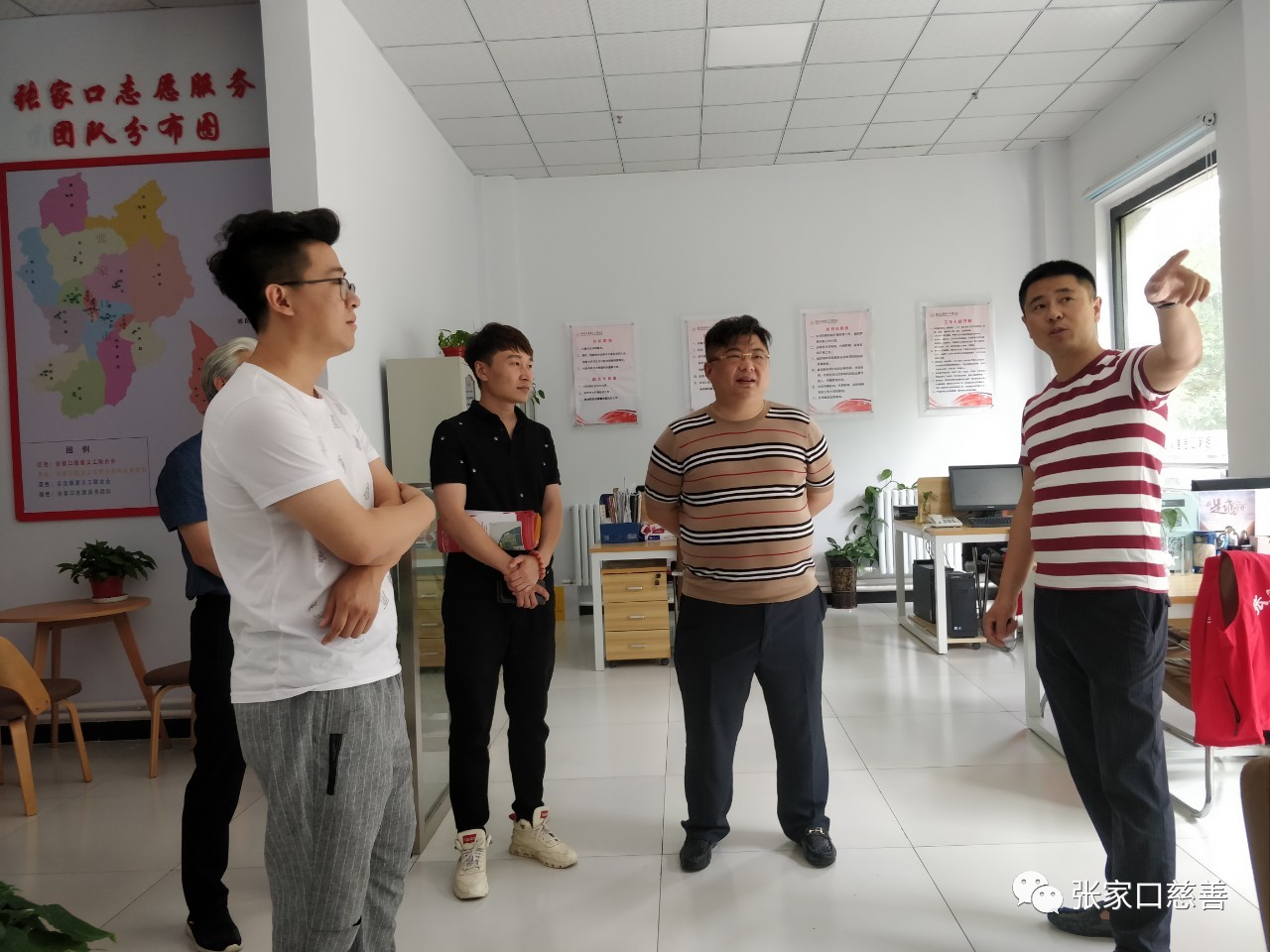 2019年6月7号下午,河北省梵天慈善基金会理事长高杰、副理事长马力、李鹏宇莅临张家口慈善义工联合会指导交流,张家口慈善义工联合会党委书记 会长贾庆贺、执行秘书长赵小军、副秘书长臧沙沙进行了接待,高杰理事长、副理事长李鹏宇表示,此次基金会是受河北省民政厅民间组织管理局领导的指定到张家口慈善义工联合会进行调研,希望通过联合会的力量,帮助他们的项目进行落地,造福张家口更多有梦想的孩子,助力脱贫攻坚,开展战略合作。