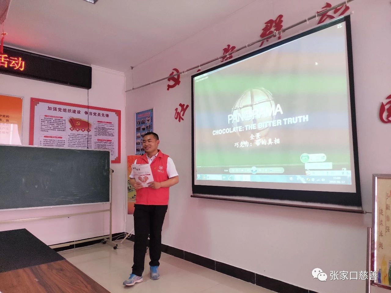 2019年6月12日下午14时许,文化专业委员会蓝色胶片公益队联合桥东区慈善义工联合会北师乐缘之家在林园北街社区开展了观影活动,组织并放映《巧克力-苦的真相》纪录片。这次的活动是以每年6月12日“世界无童工日”为基础开展,旨在呼吁越来越多的人了解关注童工的现状。另外此次活动有幸邀请到了北师乐缘义工之家李嫦英教授。通过李教授的讲解和影片反映的内容,让大家更好的了解到此次活动的意义与目的。