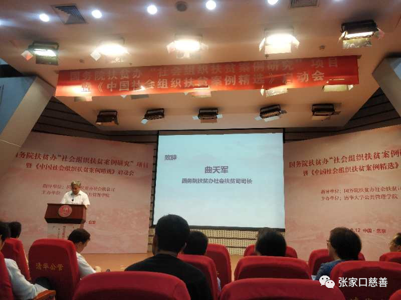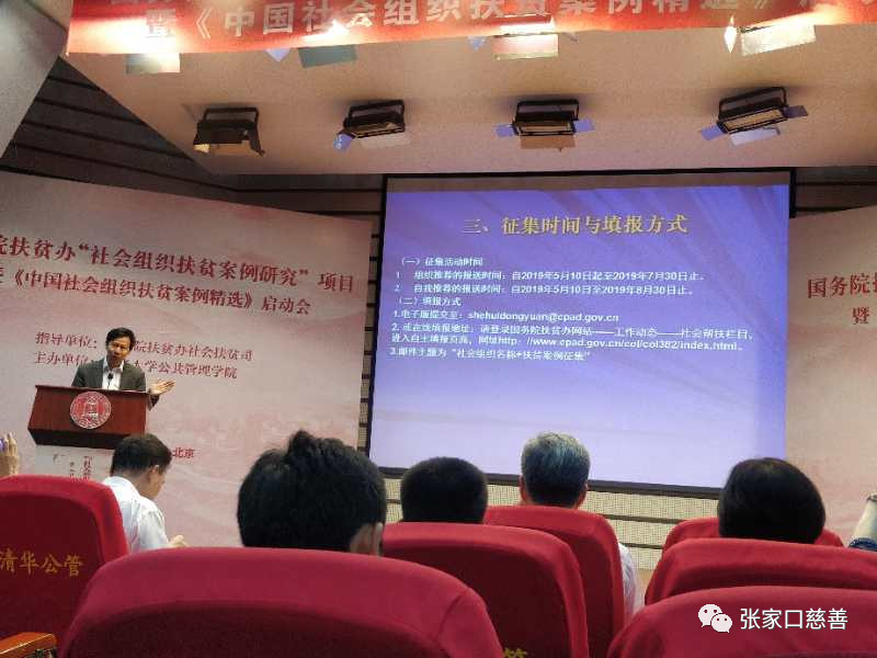 2019年6月12日,由国务院扶贫办社会扶贫司作为指导单位,清华大学公共管理学院主办的国务院扶贫办“社会组织扶贫案例研究”项目暨《中国社会组织扶贫案例精选》启动会在北京清华大学举办,国务院扶贫办—社会扶贫司司长曲天军,民政部—社会组织管理局副局长刘振国,清华大学公共管理学院党委书记彭宗超出席会议,各地区的社会组织近百人参会,张家口慈善义工联合会副秘书长臧沙沙、经开区慈善义工联合会秘书长杨晓梅作为张家口社会组织代表参加了此次会议。
