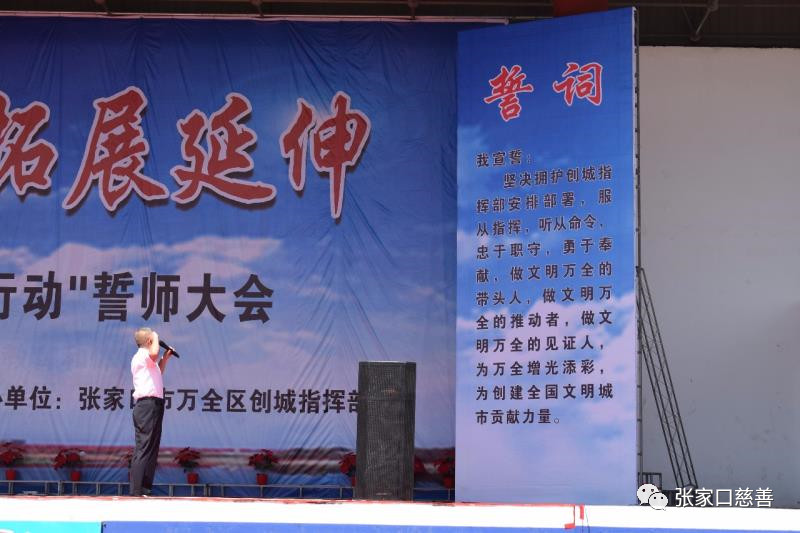 2019年6月11日,万全区体育场开展创建省级文明城区、助力张家口市创建全国文明城市“十大专项行动”誓师大会,旨在凝心聚力,动员全区上下进一步统一思想、鼓足干劲、振奋精神、扎实苦干,确保我区创建文明城市取得成效,确保今明两年创城工作顺利通过测评验收。