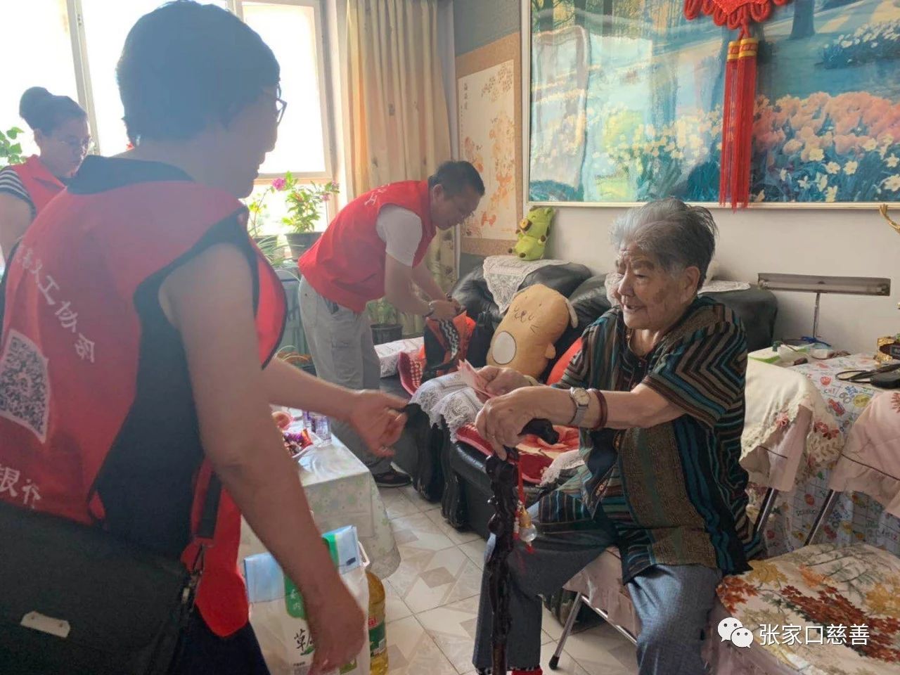 建党98周年暨“七一”建党节来临之际,张家口慈善义工联合会桥东区党总支组织开展“走访慰问建国前老党员,共度七一建党节”活动,党员们带着油、米、面、白糖、茶叶, 还有每户300元慰问金。走访慰问了建国前入党的老党员,感谢他们为党的事业作出的贡献。