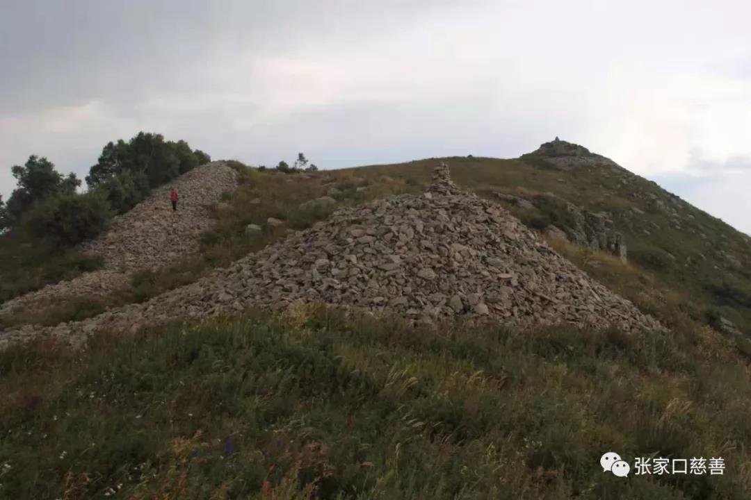 第二站我们来到位于崇礼马驹沟村的大尖山长城。这里地势较高,海拔1893米。有三条长城,向东的一条去赤城方向、向西的去宣化方向、向北的一条经崇礼直通坝上草原。三条长城汇聚在大尖山、壮观无比