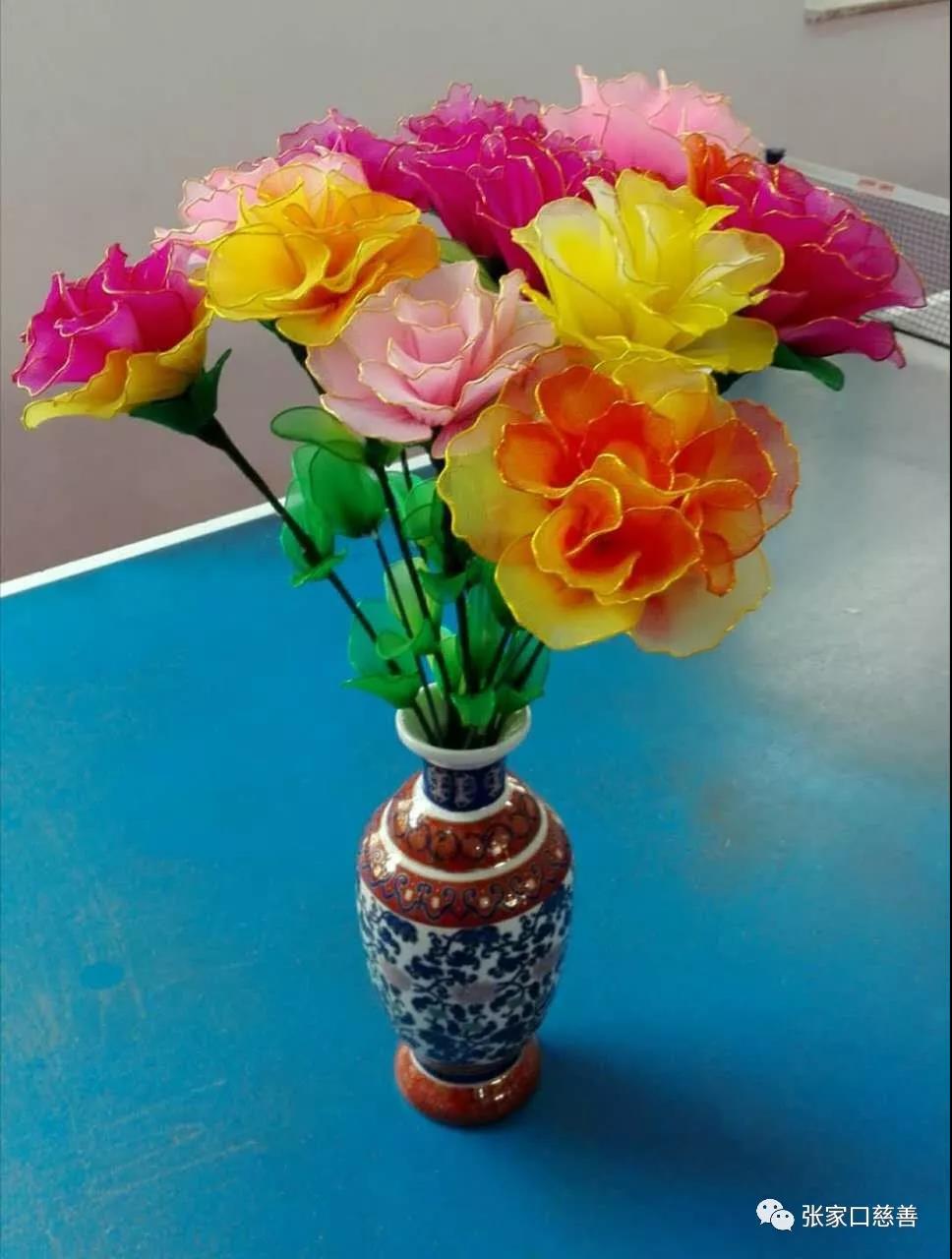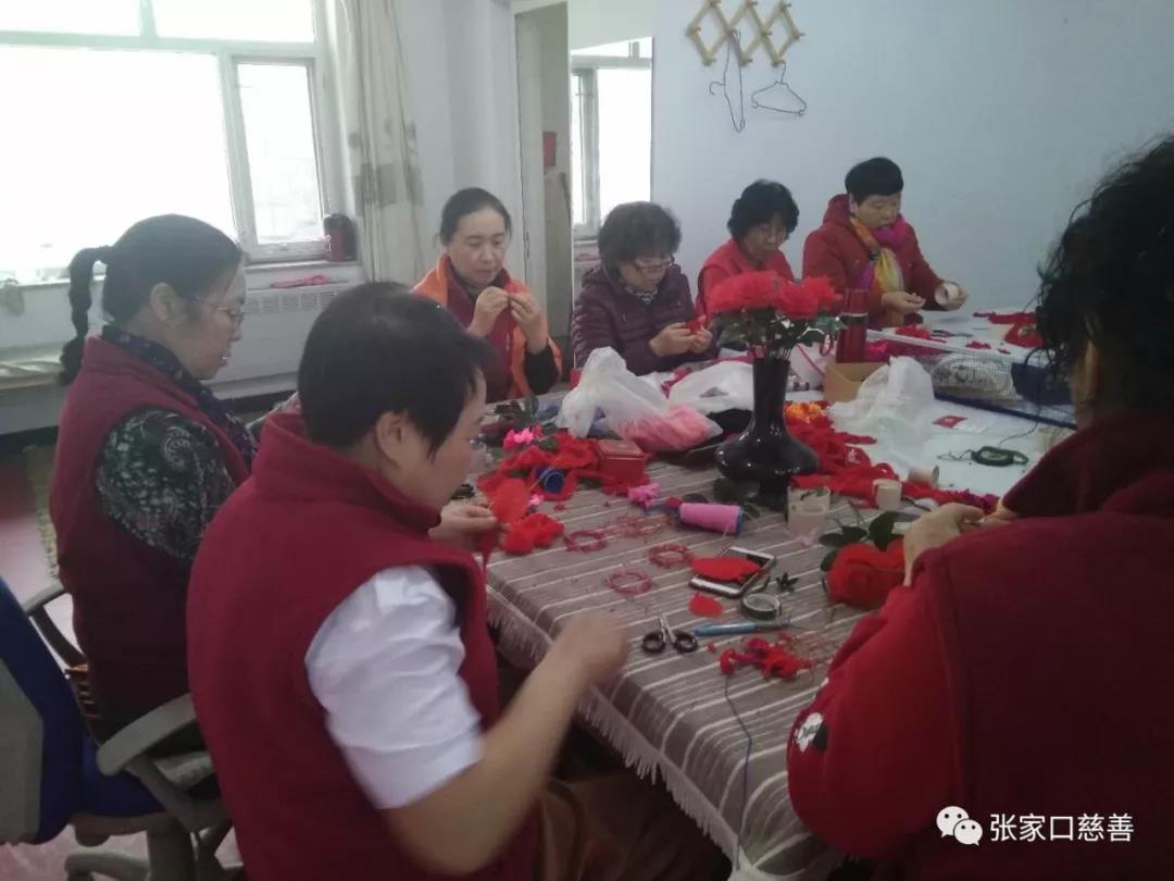 此活动倡导志愿者及家人每人捐出一点零花钱。通过微信红包将善款汇集起来,做出了自己的产品,通过义卖和组织销售,把所得利润购买生活必需品,捐赠四个社区贫困居民和军烈属家庭。通过一段的实践活动,大家分析市场形式,认为产品单一,不够新颖,吸引不住买家的眼球。必须攻克新产品,引进新的工艺方法,提升网花的质量。在这关键时刻,李风梅老师加入到这个团队,她带来了新的工艺方法,网花队如虎添翼。