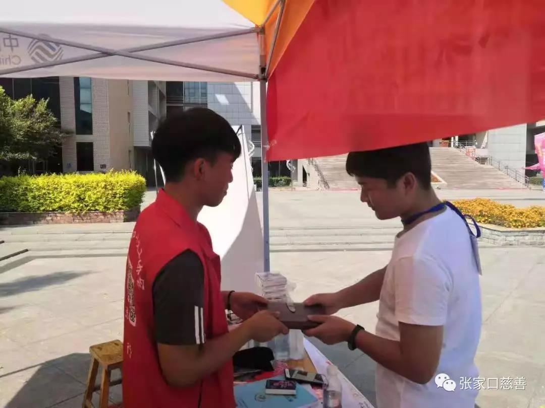 2019年9月17日,蓝色胶片公益队在宣化科技职业学院开展为《张家口慈善》杂志募捐活动。