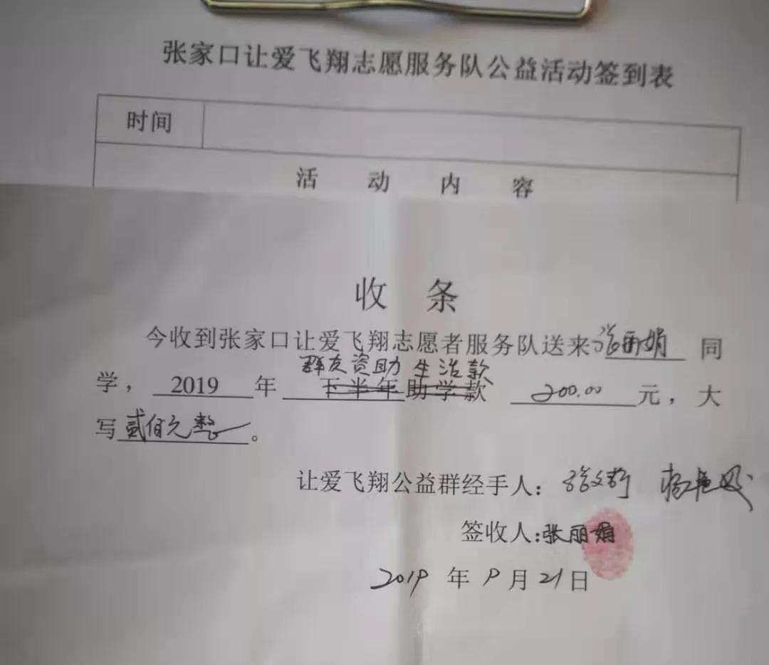 金秋九月,太阳正晴,2019年9月21日,让爱飞翔志愿服务队一行五人到桥东区东望乡山周顶屯和宣化区看望资助的孩子。