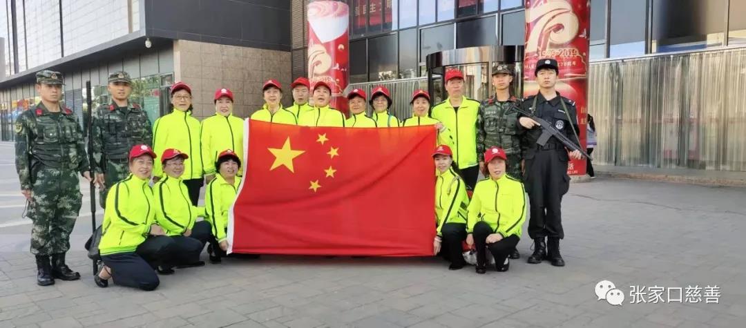 面对国旗,重温志愿者誓词:我承诺,尽己所能,不计报酬,帮助他人,服务社会,践行志愿精神……。郭卫兵总队长发表了热情洋溢的讲话,他说,今天我们喜迎祖国华诞70周年,唱响我们心中的歌,把我们自愿者最美的笑容展现,把我们最美的歌声唱响山城。近百名志愿者老师,统一服装,精神焕发手摇小国旗,放声高歌,《没有共产党就没有新中国》、《我的祖国》、《义工之歌》、《我是光荣的张垣志愿者》等脍炙人口的歌曲。嘹亮的歌声,饱满的热情,倩丽的服装,吸引了过往行人,形成一道亮丽的风景线。