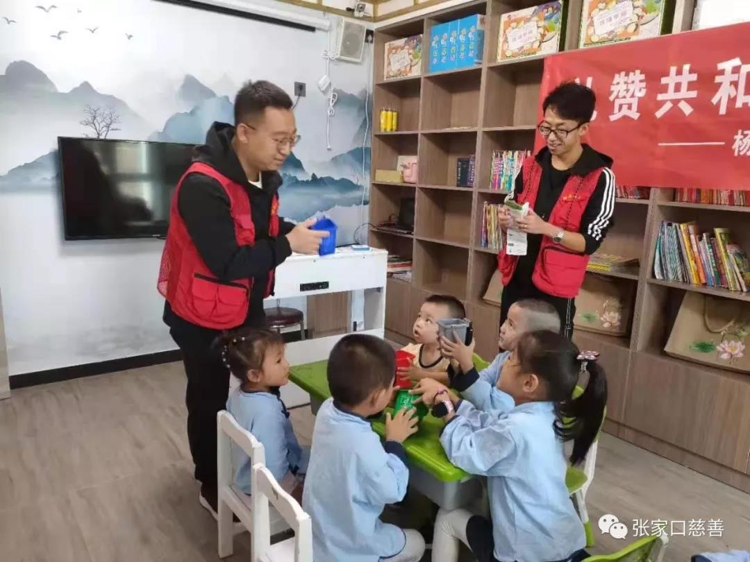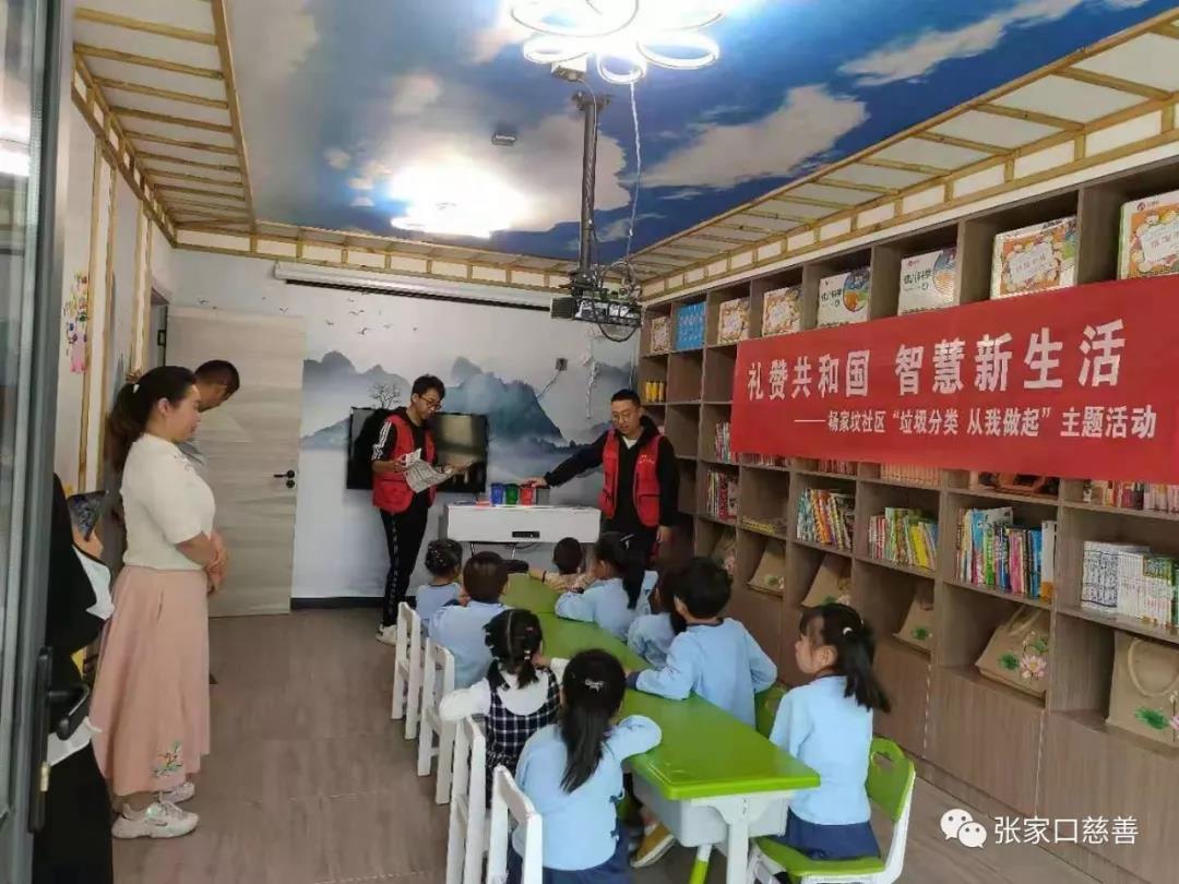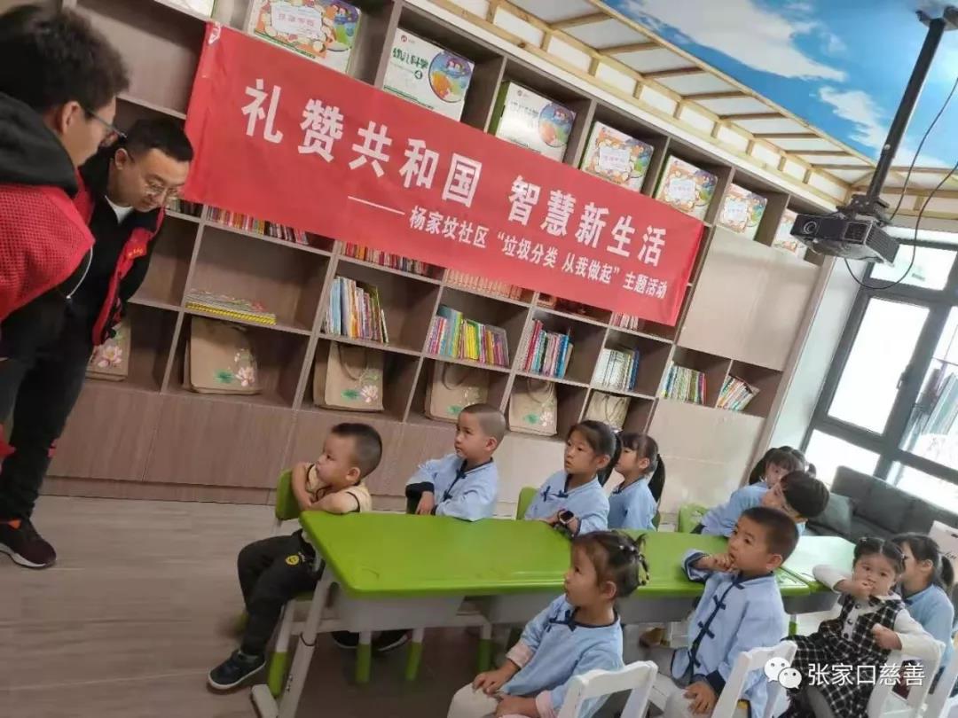 2019年9月25日下午3点,桥东区慈善义工联合会爱宝义工队联合胜利北路街道办事处杨家坟社区为幼儿园小朋友讲解垃圾分类知识。