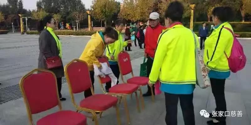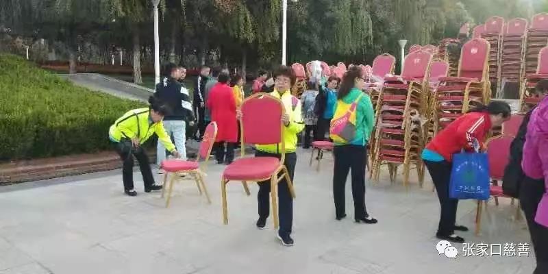 大家二话没说帮着工作人员搬椅子,擦拭干净并摆放整齐。在我们的带动下其它队队员也跟着一起忙碌起来,一千多张椅子不到一小时都擦拭得干干净净,并摆放的整整齐齐。这就是黄丝带志愿者,无论在什么活动中都起着模范带头作用,用我们的行动感动着他人,一起投入到公益活动中。